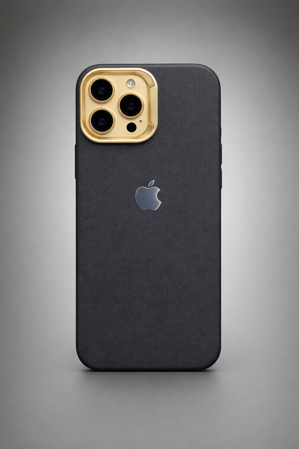 Premium Black PU Leather iPhone Case with Metal Camera Ring.